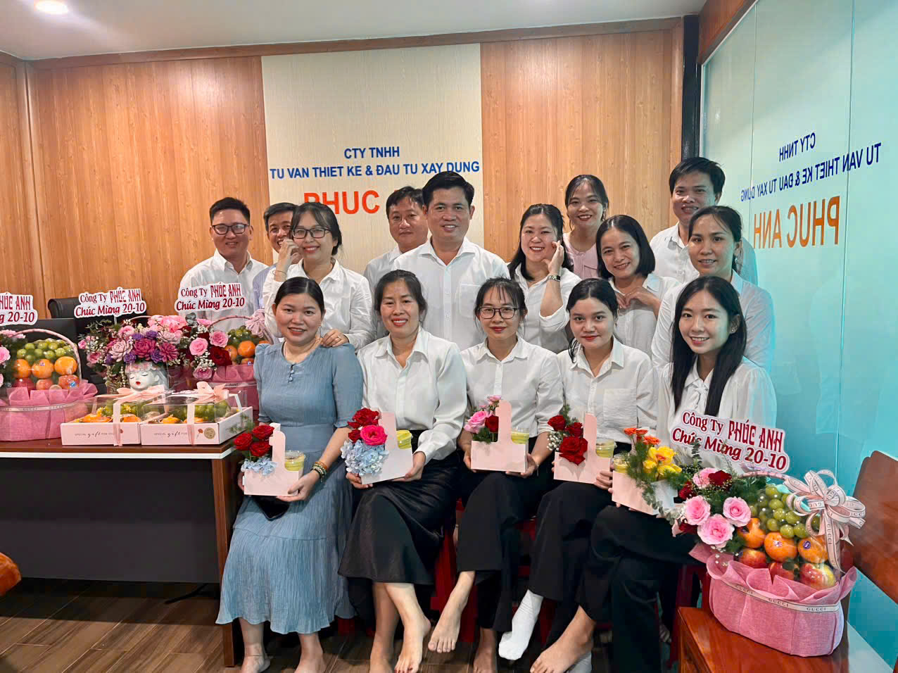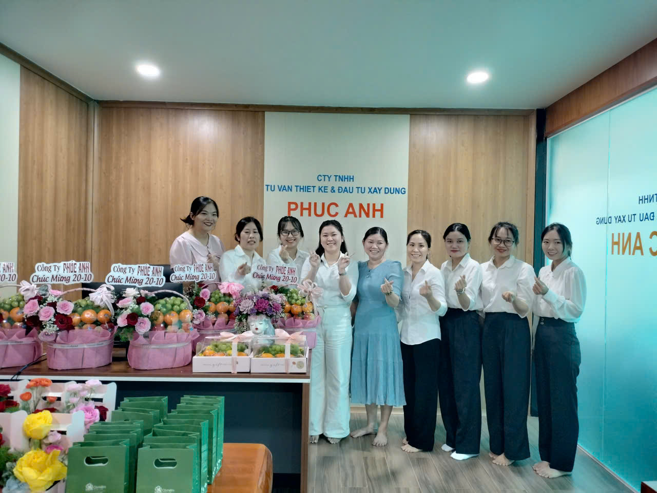 Lãnh đạo công ty xây dựng Phúc Anh chúc mừng chị em phụ nữ trong công ty nhân ngày phụ nữ Việt Nam 20-10 .